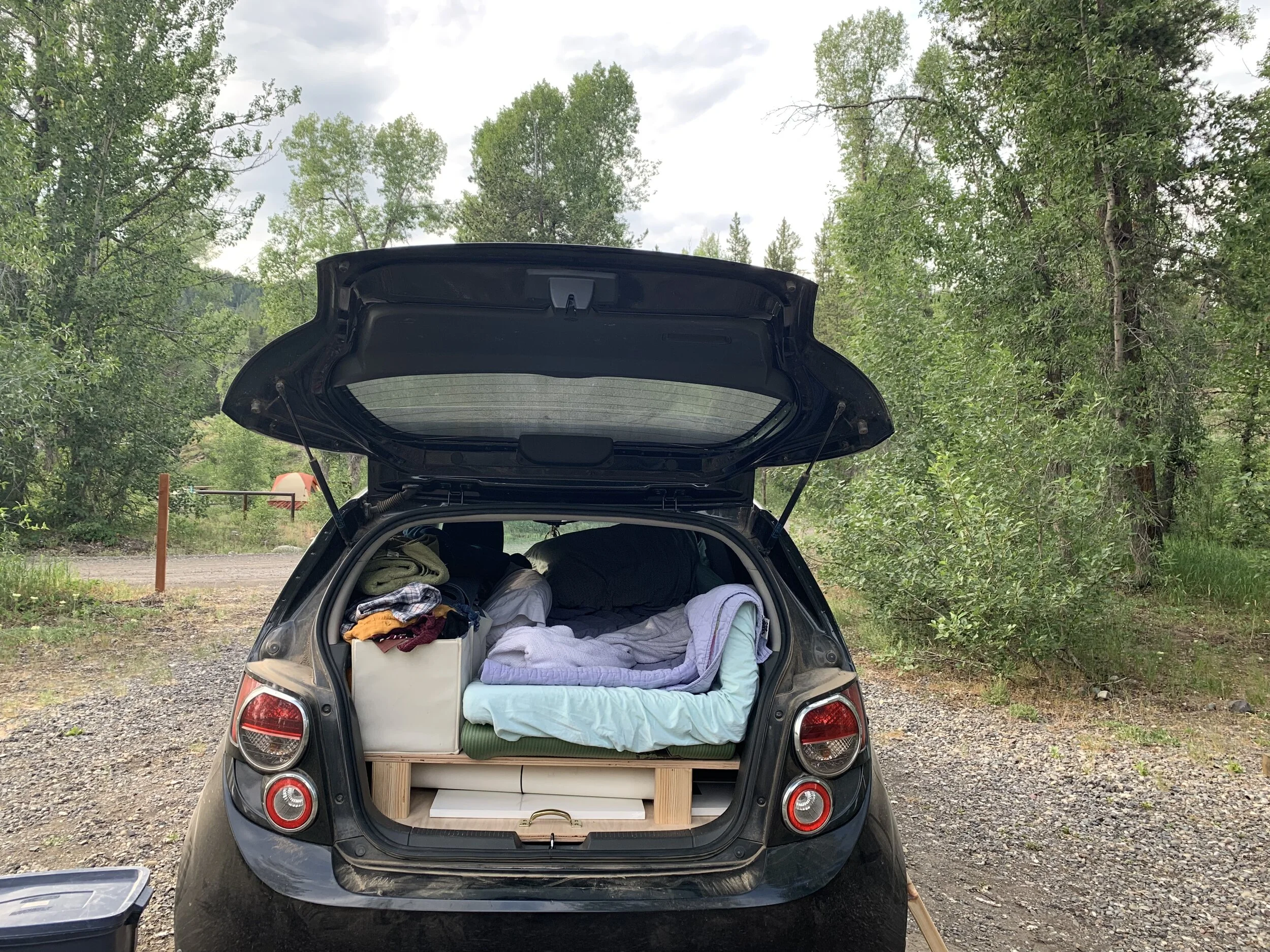 Even though it was a push to get here, I’m so happy to finally be on the road again and to spend the last week and a half of June in Colorado. I did a bit of camping & hiking in Allenspark in the Rockies, where I made a few drawings from the campfire charcoal (very fun outdoor art hack!). I visited friends in CO Springs & Ft. Collins, and went to Denver’s Pride celebration. One of the main creative projects this month was building a wooden car camping platform in my friend’s garage (thanks Garrett!!). I completely took out my backseats and build a 3-piece platform that is all easily foldable/removable for max versatility in a small hatchback car. Now I have a more comfortable sleeping arrangement, storage, and protected spots for paintings.